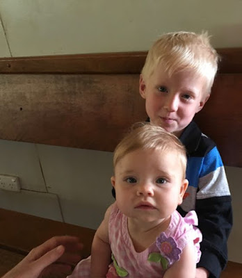 My kids are besotted with this little one and I don't blame them! What a sweetie, so good natured and kind enough to let small kids hold her (with me right there to keep her safe). By the time we thought to take pictures David and the girls had run off to play - this was immediately after church. Will was especially excited, as you can see! Seth was so proud of himself. He looks super complacent, like it's no big deal to handle a baby . . .